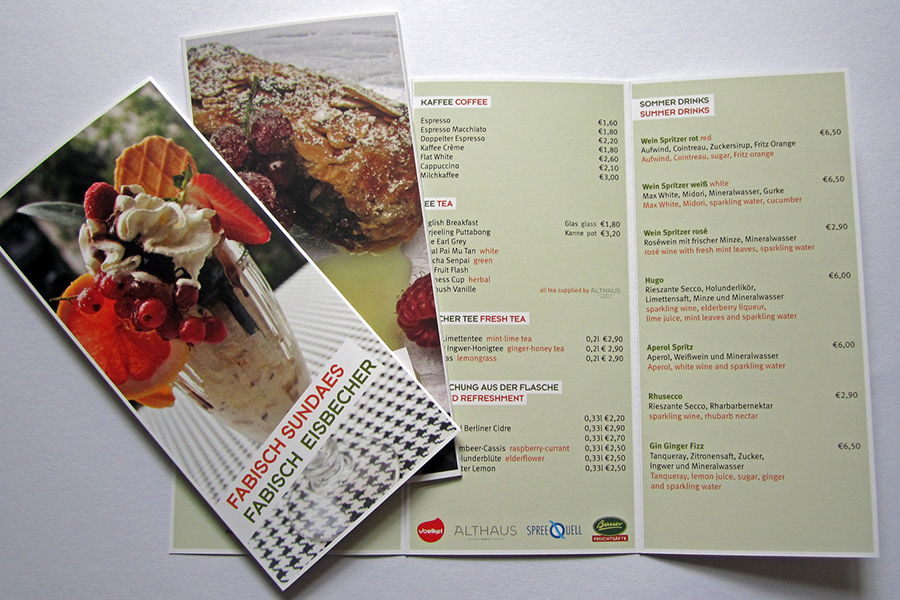 Design of all print material for Fabisch restaurant and bar. This includes the breakfast, afternoon and dessert menus as well as the photography for them, the cocktail menus, children’s menu, breakfast vouchers and signage for events.