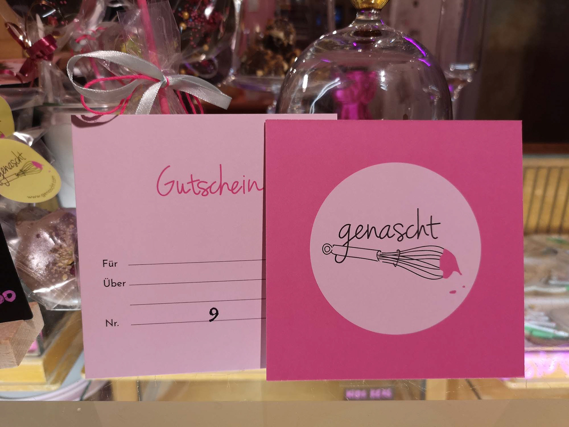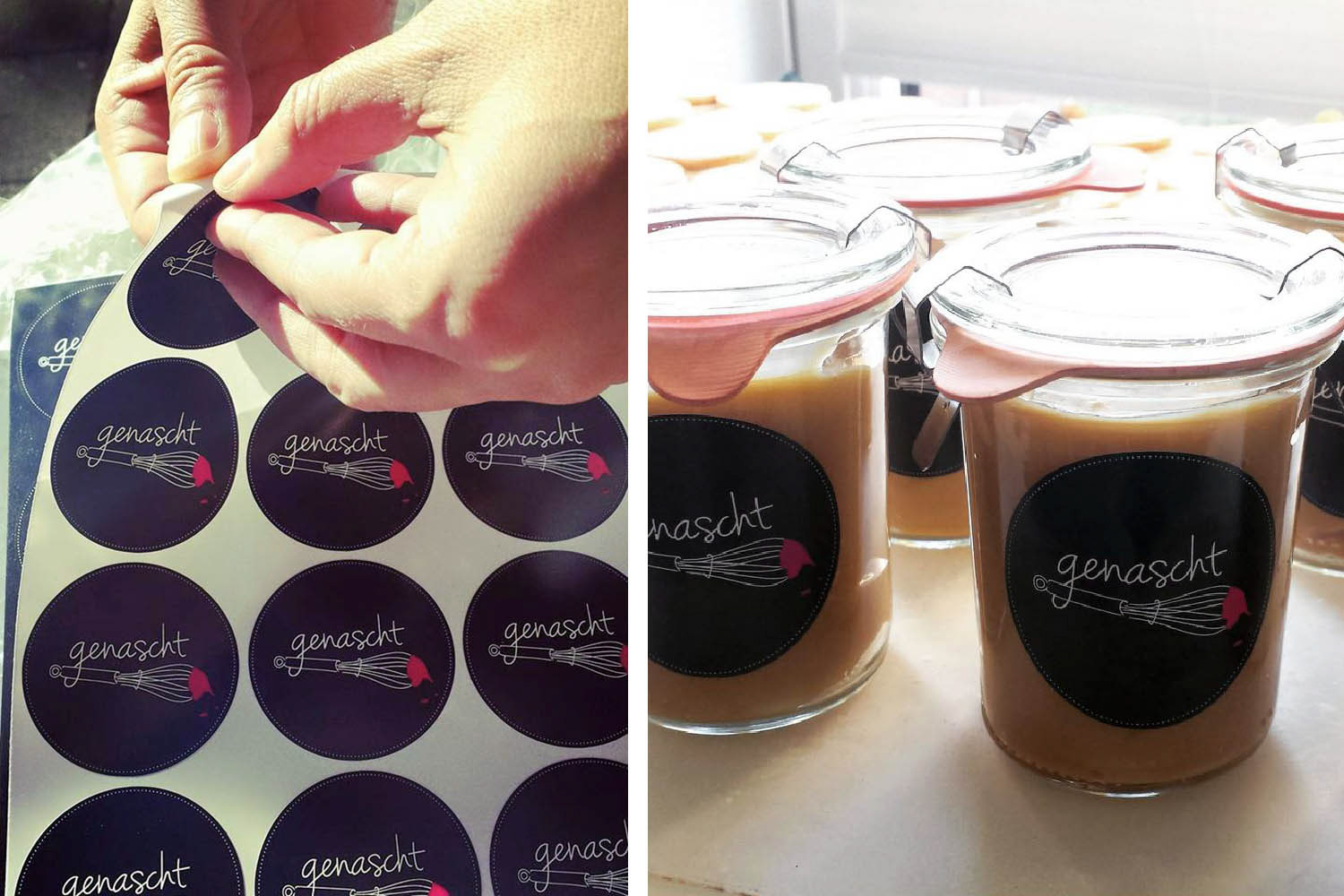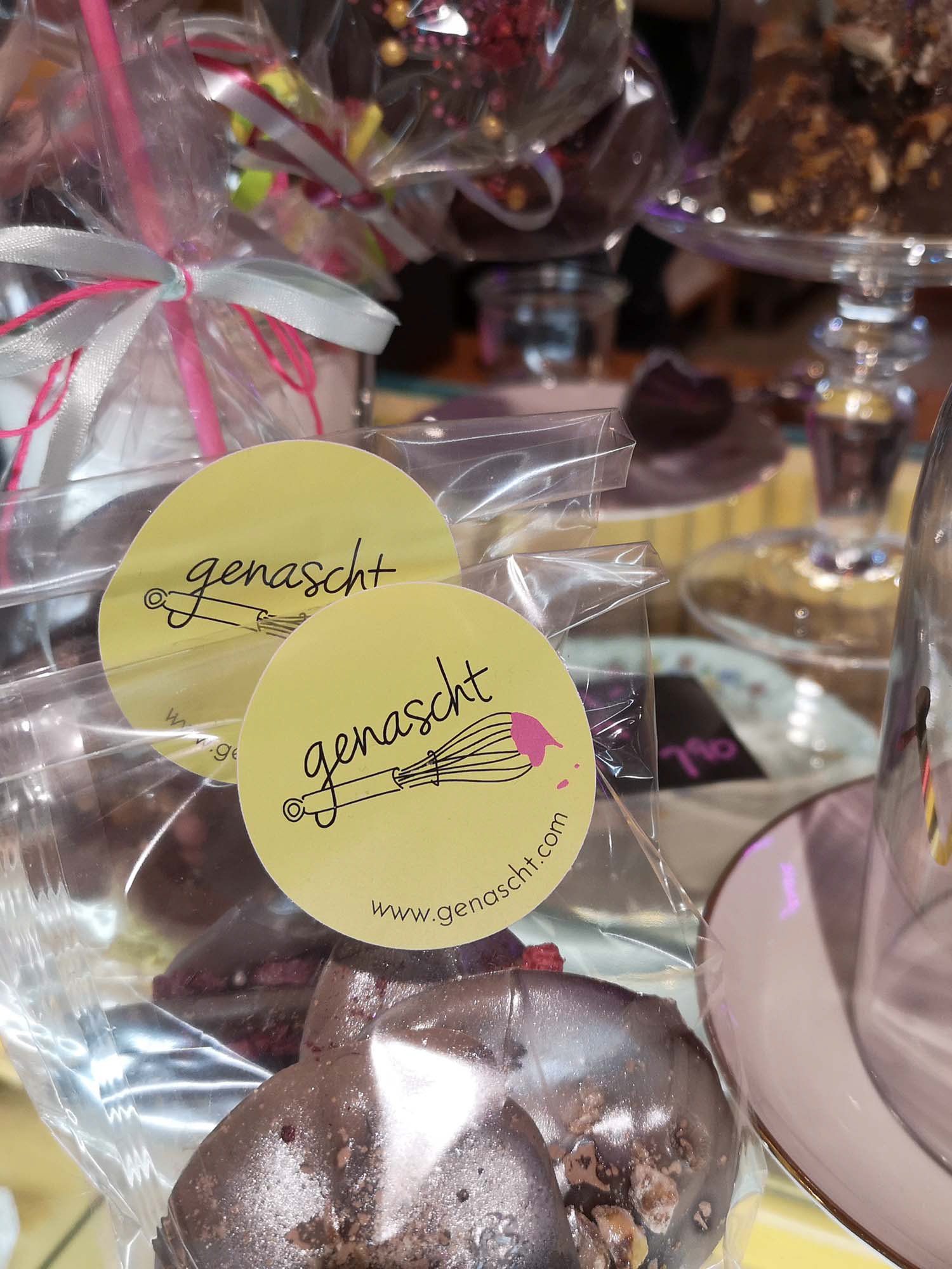 “Naschen” is German for nibbling something with great relish, especially something sweet – “genascht” means it has already been snacked away :)
