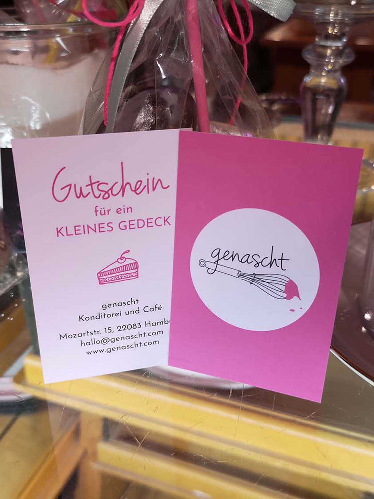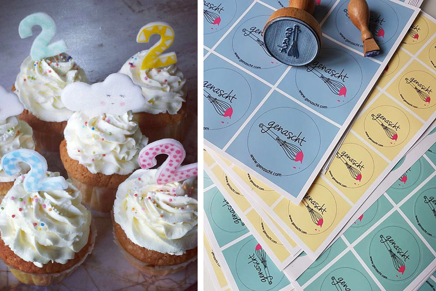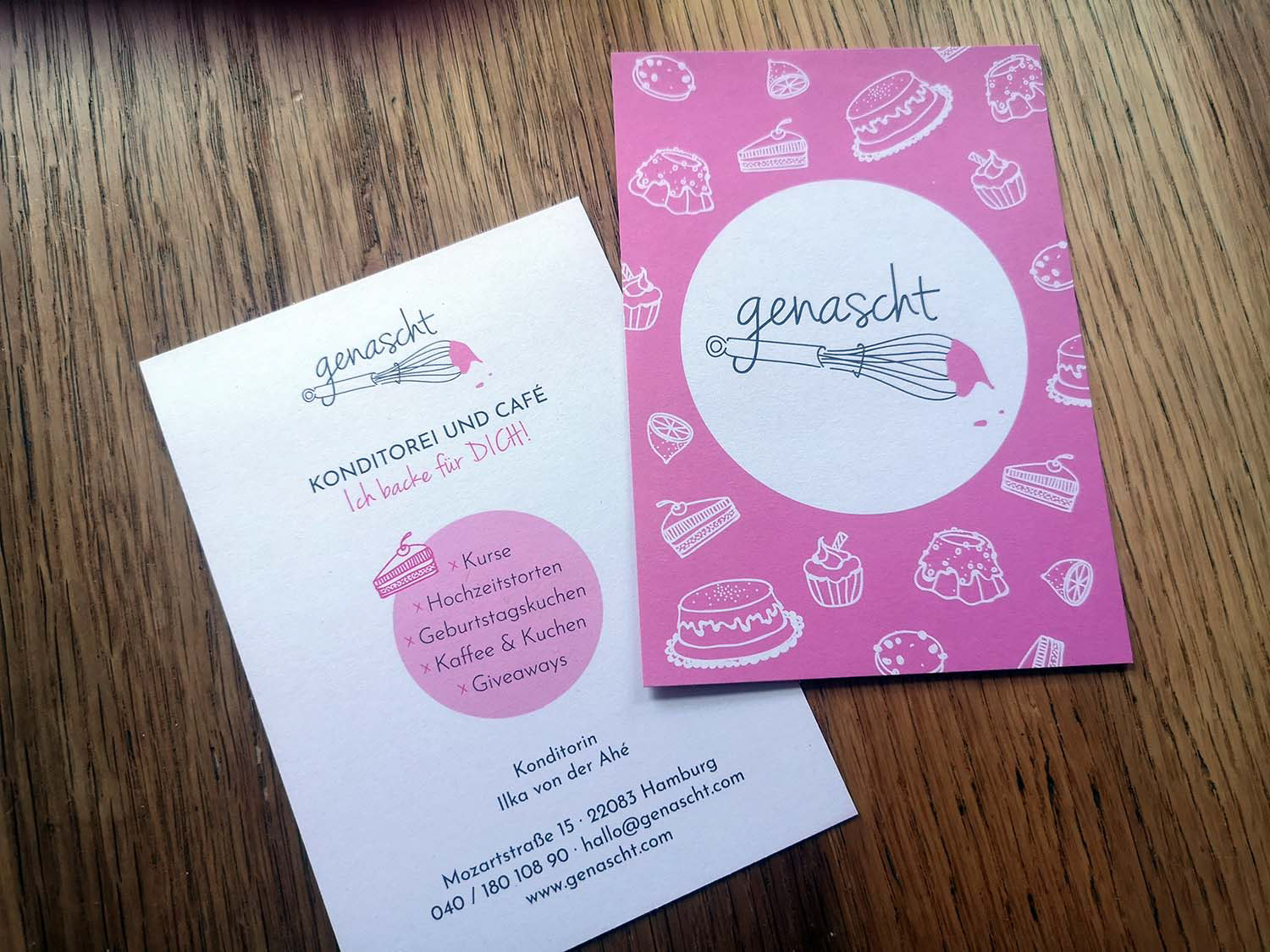 Identity design, including the logo, labels, gift vouchers, flyers and stamps (2017-2019), for a pâtisserie and café in Hamburg run by Ilka, a pastry designer who also gives courses in decorating cookies, cupcakes and other tasty and beautiful treats.