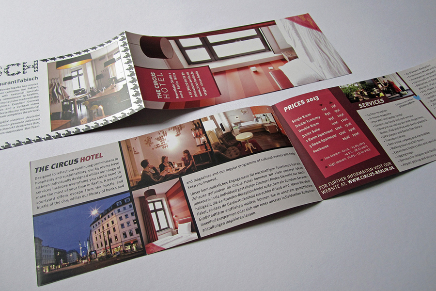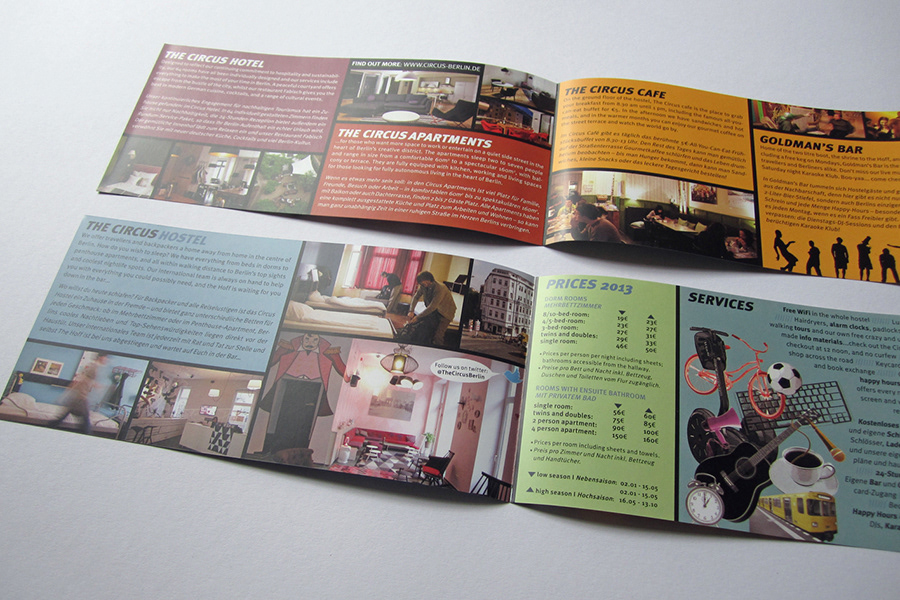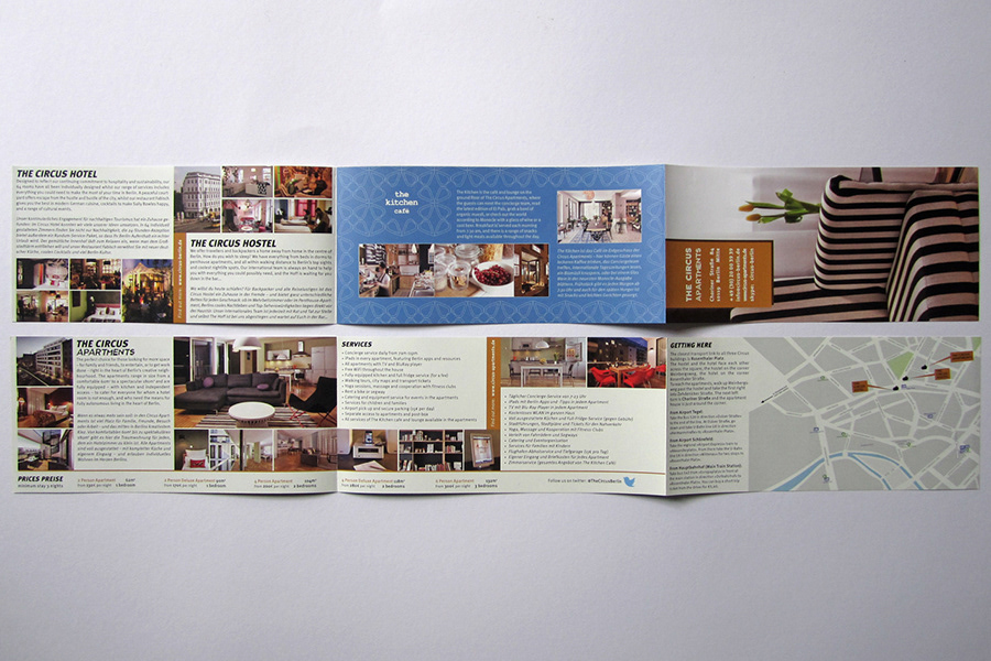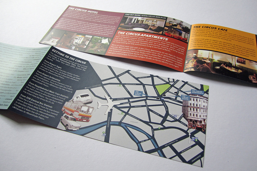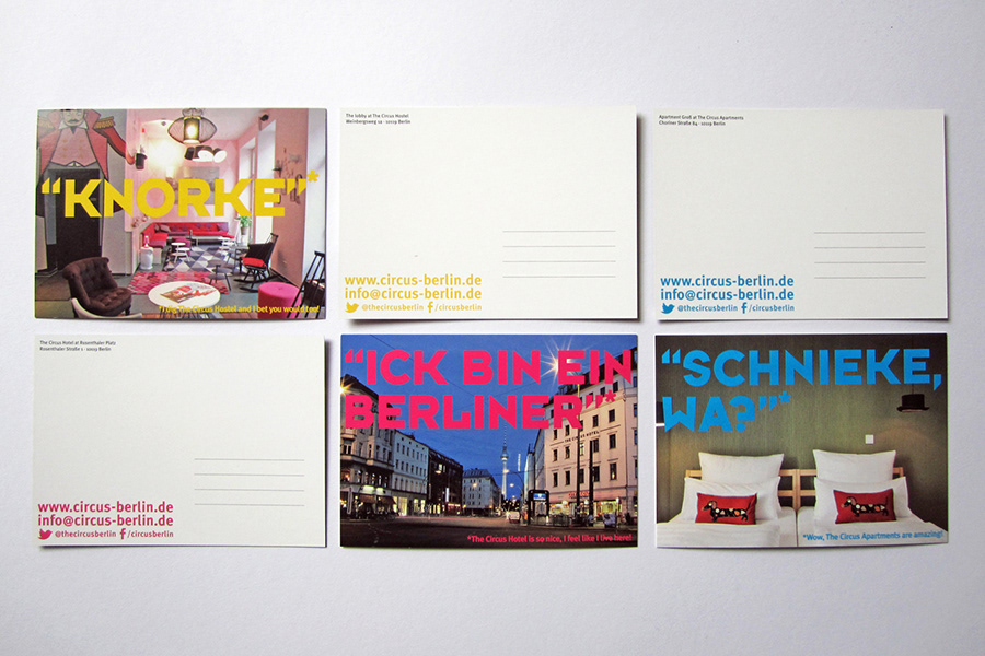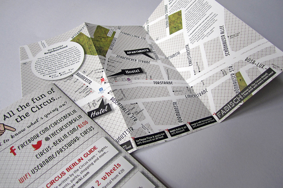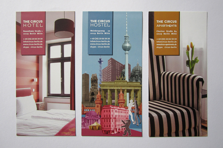 Design of various print matter for The Circus hotel, hostel and apartments from my time working there as graphic and interior designer 2010–2014.