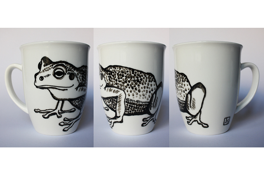 A series of animals hand-painted directly onto the cups with porcelain color.