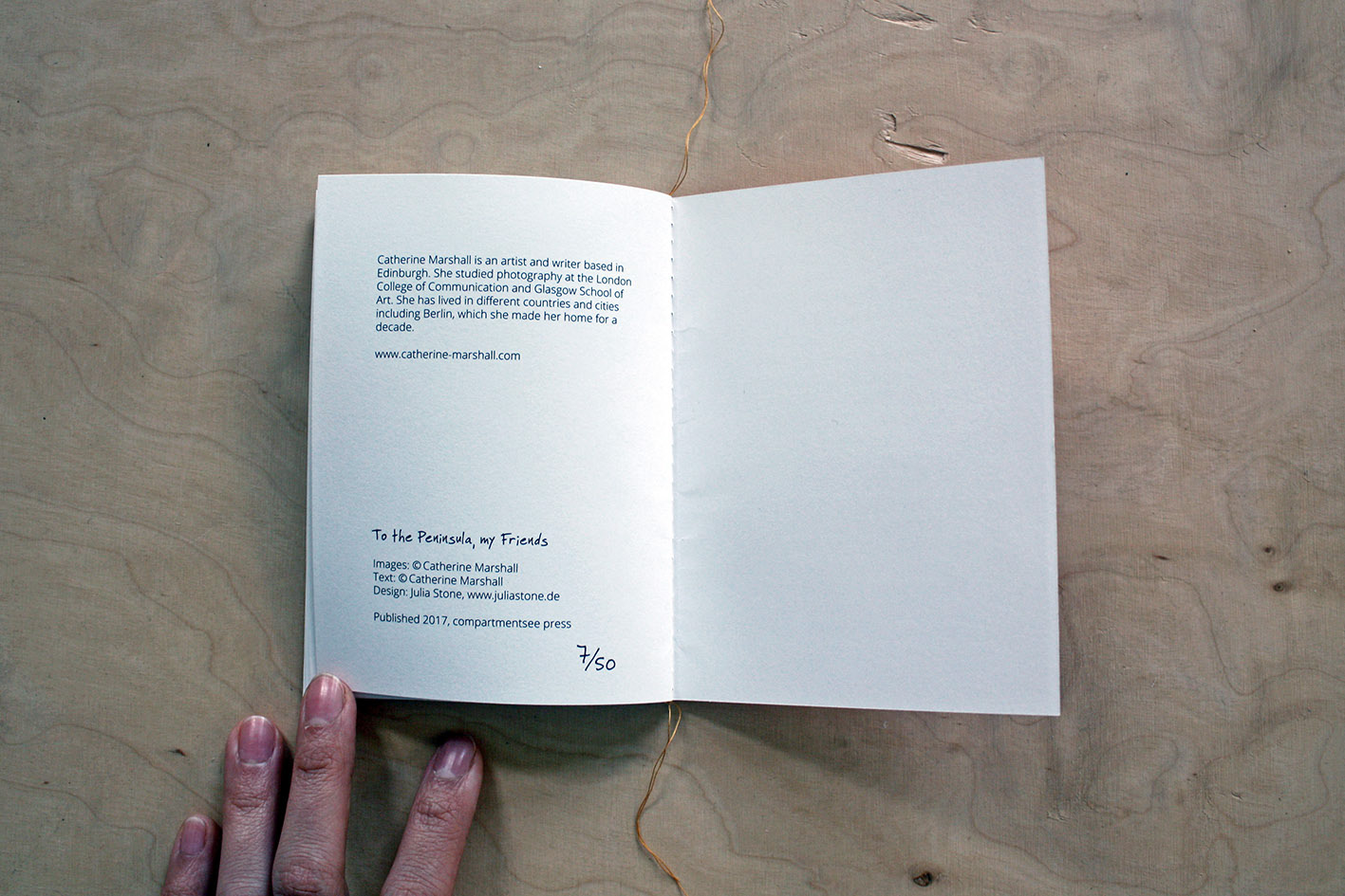 Design and production of ‘To the Peninsula, My Friends’, a pocket-sized book with a poem and photographs by Catherine Manfield.