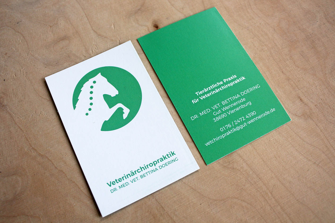 Logo development, business cards, letterhead and stamp for a veterinarian specialized in chiropractic treatment for horses.